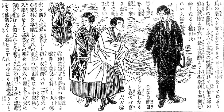 | 身装画像コード | D4kyo:[教員] Psu:[スーツと附属品] Wkut:[靴;サンダル;靴修理;靴磨き] D6se:[洋装;西洋化;西洋観;ハイカラ;西洋かぶれ;開化ぶり;西洋憧憬] D4ga:[学生・生徒(男子中学生以上)] Vhao:[羽織] Vham:[袴(男性)] |