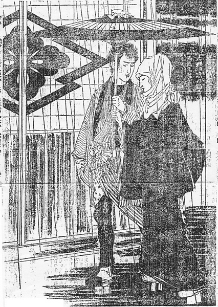 | 身装画像コード | Jkp:[カップル(親子・夫婦・恋人・友人など)] Wzu:[頭巾;覆面] D5am:[雨や雪など、気象条件による服装] Wge:[下駄;クロッグ] D2ot:[男の髪型] D3su:[裾;褄;端折り;からげ] Wkas:[傘] Jki:[気象条件(雨,雪,強風,強い陽射しなど)] |