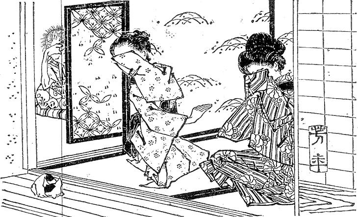 | キーワード | 袖口で涙をぬぐう;猫;屏風 |