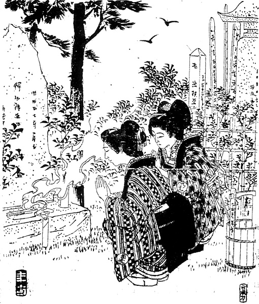 | 身装画像コード | D804:[おそれ・へりくだりの表現;祈りのかたち] D80:[姿勢;ポーズ(特異な姿勢・ポーズ・格好一般)] G14:[墓地のある景観] D5ha:[墓参;寺参り;神詣で] |