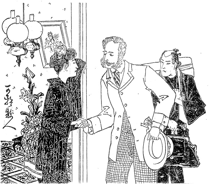 | 身装画像コード | D2:[ヘアスタイル] D7se:[西洋人モデル;混血児タイプ] D1hi:[ひげ] D6se:[洋装;西洋化;西洋観;ハイカラ;西洋かぶれ;開化ぶり;西洋憧憬] Wne:[ネクタイ;ネックバンド] Wbo:[かぶり物一般;帽子] Wka:[鞄] D803:[よろこび・親しみ・愛嬌・合歓の表現 ex.握手,抱擁,キス,ベッドシーン,pornography] H000:[照明;照明具(一般)] |