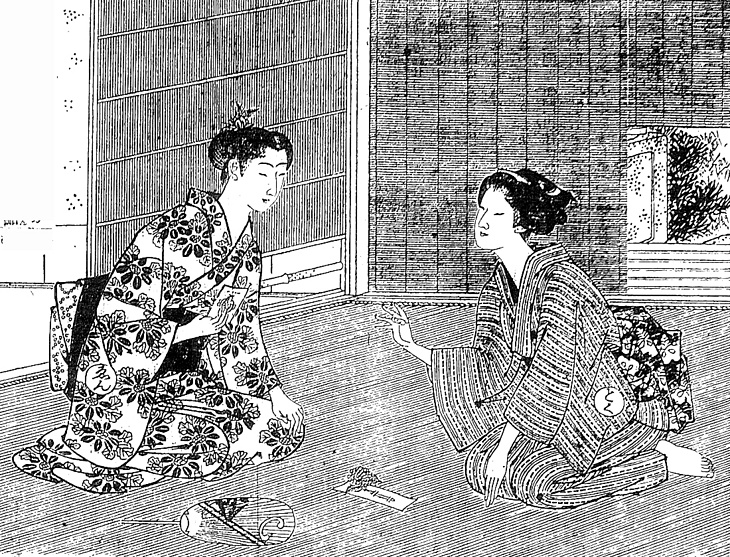 | キーワード | 夏座敷;総柄のきもの;眉落とし;竪縞のきもの;素足;うちわ;簀戸(すど);簾戸(すど);葦戸(よしど);廊下 |