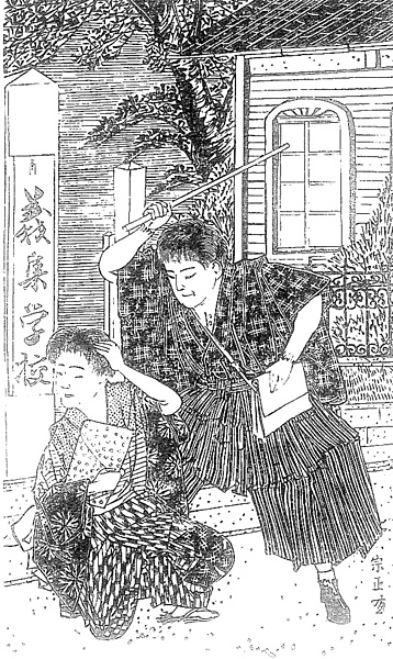 | 身装画像コード | D4ga:[学生・生徒(男子中学生以上)] Qkas:[絣] Vham:[袴(男性)] Wkut:[靴;サンダル;靴修理;靴磨き] Wka:[鞄] D802:[脅し・怒り・叱責・威圧・威厳の表現] Wzo:[草履;草鞋] G43:[学校] |
