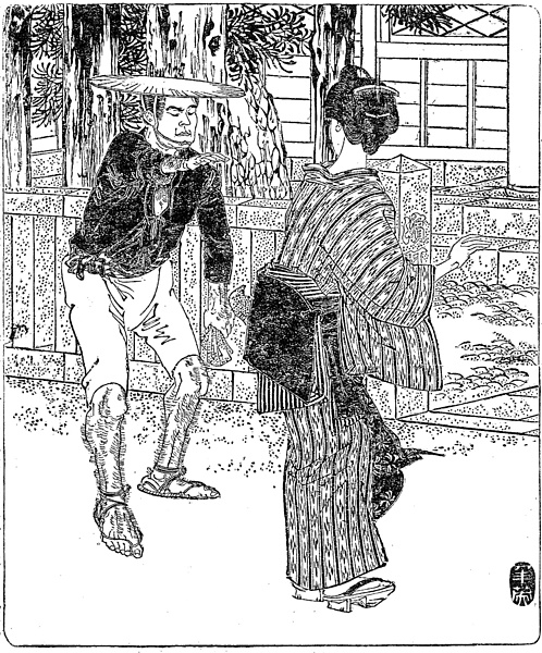 | 説明 | 第20回は、家を探して通りがかりの女を呼び止めている車夫。第21回では、探し当てた家の座敷に上げられて、出された浴衣に着替えるため、穿いてきた半股引を脱いでいる。車夫の衣裳付けは、「手首は鈕子(コハゼ)をもて止め、胸頭(ムナサキ)は紐をもて結びたる紺無地布(メクラジマ)の肌着の腰までなるを着、千種木綿の猿股とかいえる膝より二寸弱も上りたる小股引を穿き、手には手拭い、足には草鞋がけ、首(カシラ)には竹の皮をもて編みたる鶉笠の一文字なるをかぶりし独りの男其風体より見るときは人力車夫にもあらんか」。人力車夫の半股引は、規制上はもう少し長くなければならない。それは分類的にはアンダーウエアではなく、褌(フンドシ)など下穿きの上に穿くもの。直接恥部を覆う猿股とはちがう。その点でこの叙述はわかりにくい。作者は猿股という名を知らないように書いているが、当時はあまり、一般的に使われていることばではなかったのだろうか。(大丸 弘) |