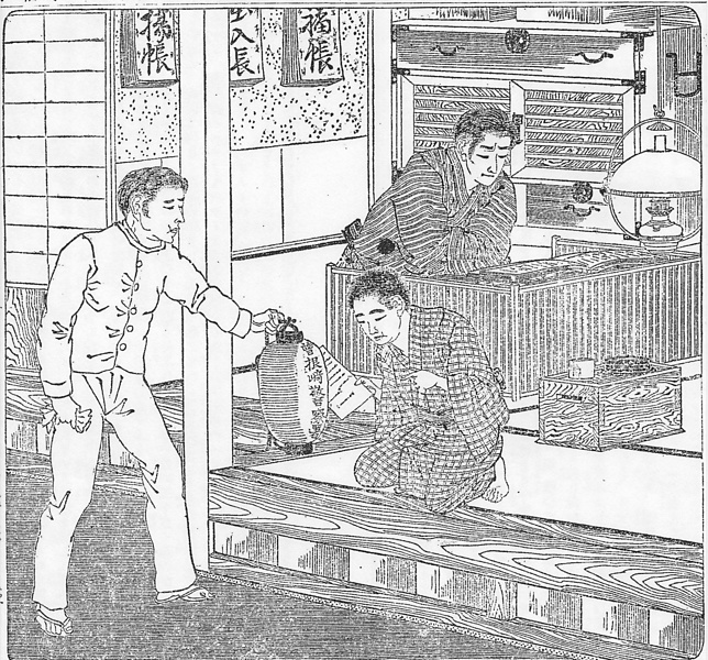 | 説明 | 町家の店先に、警察署の小使い(使丁)が召喚状を届けにきた。手代の男は帳場格子のなかで小僧からその召喚状を受けとり、受書をしたため、印を押すと、小使いはなんのことばもなく受書をひったくるようにして立ち去る、とある。官吏一般もそうだったが、とりわけこういう末端の人間が権威を笠に着て横柄だった。またこの少し前の1882(明治15)年に、東京のある区役所では、小使に紺木綿の制服を決めて、呼出状などを配るときなどは必ずそれを着て行くようにした、という記録が残っているが、とかく薄汚く、馬鹿にされるような存在でもあったらしい。(大丸 弘) |
