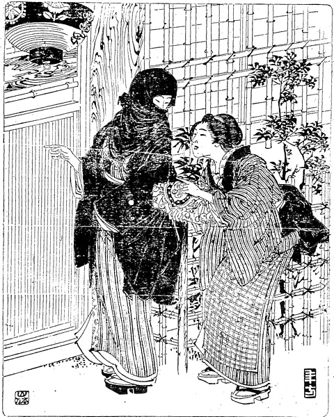 | キーワード | 御高祖頭巾;おこそ頭巾;後丸(あとまる);女中;竪縞のきもの;黒襟;御神灯(ごしんとう,ごじんとう) |