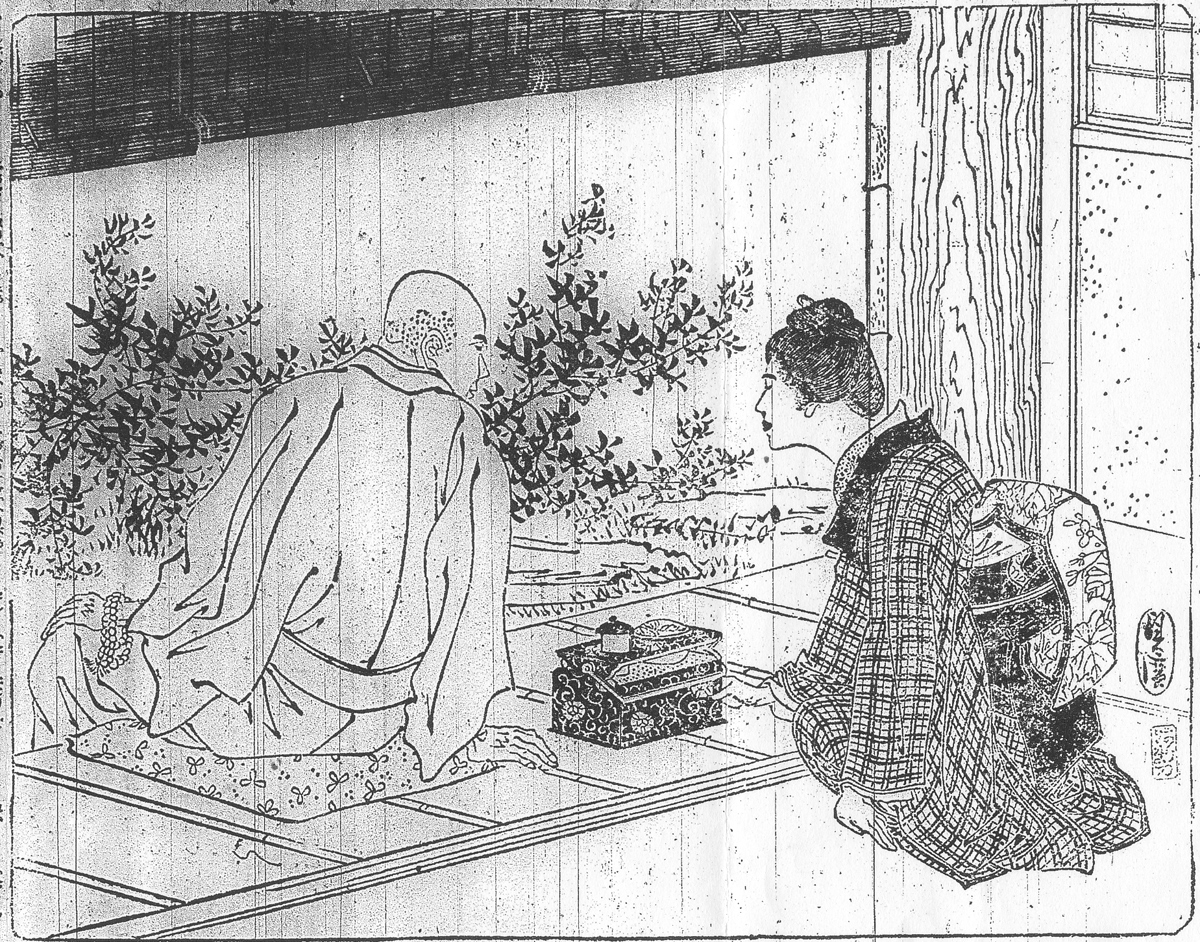 | 身装画像コード | D4so:[僧侶;神官;聖職者] D004:[適齢期の娘;新造;(1) 嫁入り前の娘,新妻,さらに一般の他家の妻女をいう。] D2so:[束髪(前期縦型の)] Vka:[掛襟] D3ob:[帯の締め方;帯の位置] G043:[縁先;縁端] |