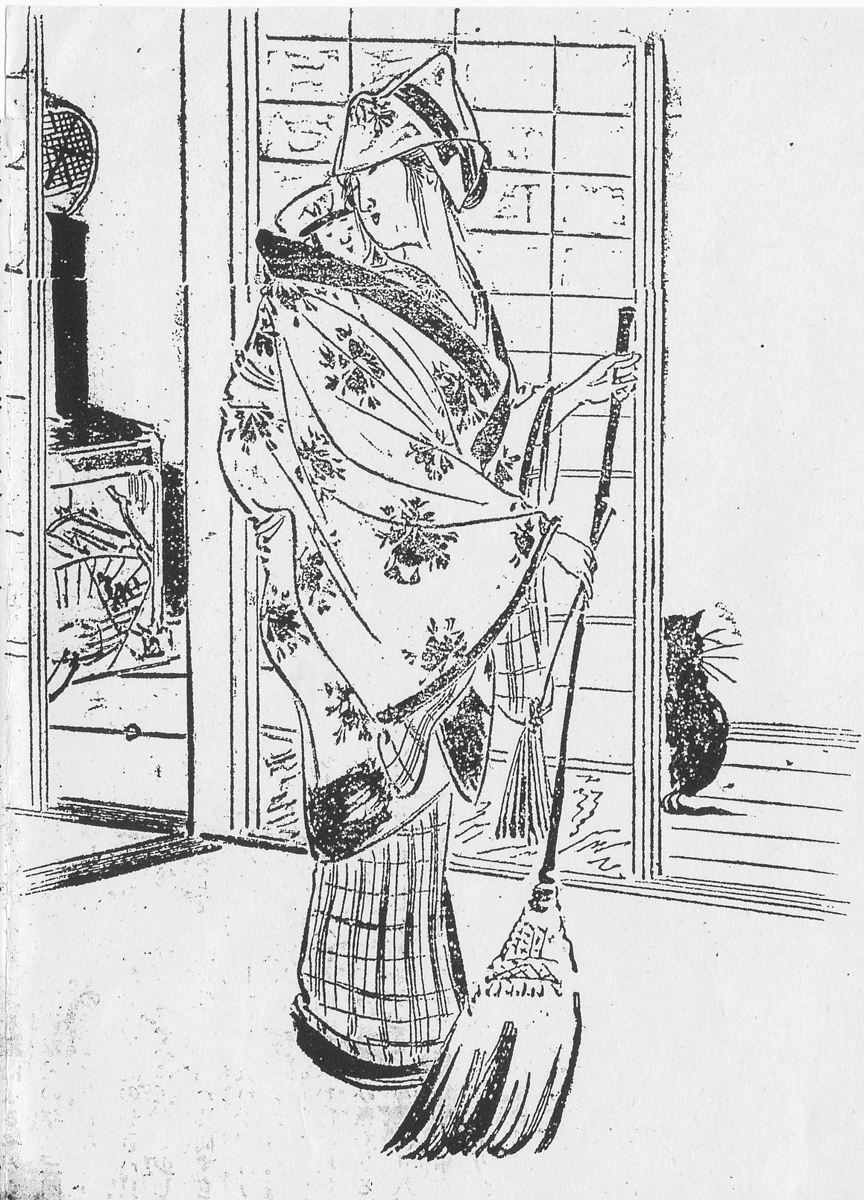 | キーワード | 姉さん被り;姉さんかぶり;姐さん被り;姐さんかぶり;黒襟;おんぶ;箒(ほうき);はたき;黒猫;障子;廊下 |