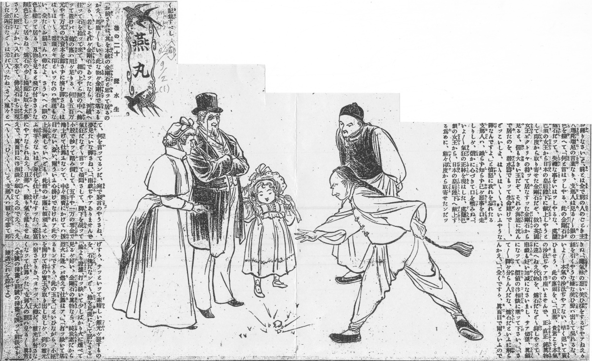 キーワード シルクハット;顎鬚;腕組みをする;エプロンドレス;中国人;中国帽子;中華丸帽子;弁髪;宝玉