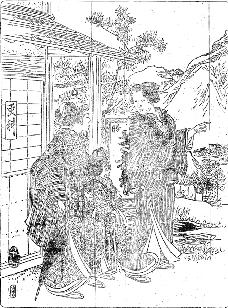 | 身装画像コード | D002:[女の子(小学生くらい)] D004:[適齢期の娘;新造;(1) 嫁入り前の娘,新妻,さらに一般の他家の妻女をいう。] D2ni:[日本髪一般] D2yu:[結綿] Vhao:[羽織] Vkat:[肩揚げ] Wzo:[草履;草鞋] D006:[初老の女性(40~50歳代)] D2ma:[丸髷] Vka:[掛襟] Wkas:[傘] |