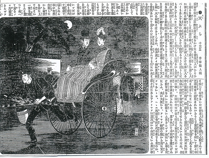 | 身装画像コード | Jkp:[カップル(親子・夫婦・恋人・友人など)] Wbo:[かぶり物一般;帽子] D6se:[洋装;西洋化;西洋観;ハイカラ;西洋かぶれ;開化ぶり;西洋憧憬] G790:[人力車] D4ji:[人力車夫] |