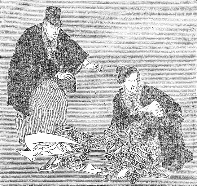 | キーワード | シルクハット;黒紋付き羽織;竪縞のきもの;眉落とし |