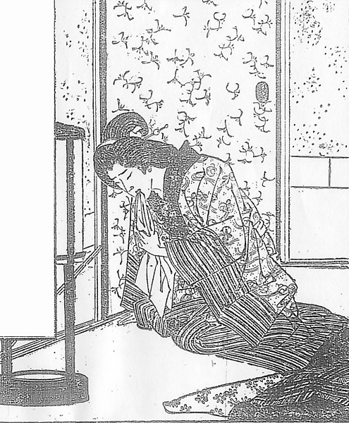 | キーワード | 竪縞のきもの;前垂れ;黒襟;手ぬぐいを噛む |