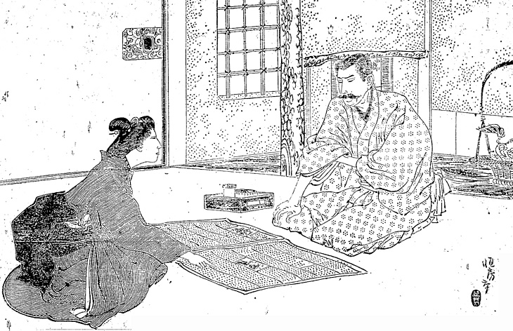 | キーワード | 簪;櫛;眉落とし;竪縞のきもの;お太鼓結び;着流し;兵児帯;煙草盆;新聞;八字髭;袖口に手を入れる;床の間;襖(ふすま) |