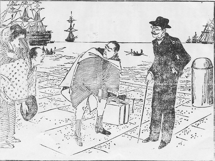 | 身装画像コード | K600:[大中の港湾施設;メリケン波止場] Wbo:[かぶり物一般;帽子] Wme:[眼鏡] D1hi:[ひげ] D6se:[洋装;西洋化;西洋観;ハイカラ;西洋かぶれ;開化ぶり;西洋憧憬] Psu:[スーツと附属品] Wtu:[杖;ステッキ;松葉杖] D5ry:[旅装;旅姿;旅装束] D3su:[裾;褄;端折り;からげ] Wka:[鞄] D801:[強い悩み・悲しみ・口惜しさ・羞恥の表現] |