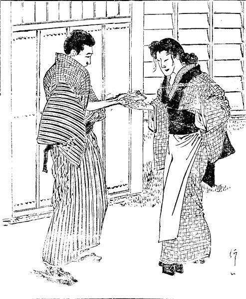 キーワード 竪縞のきもの;眉落とし;黒襟;前垂れ