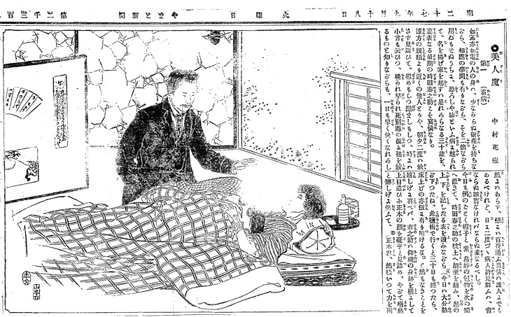 | 身装画像コード | D4ga:[学生・生徒(男子中学生以上)] D1hi:[ひげ] D6se:[洋装;西洋化;西洋観;ハイカラ;西洋かぶれ;開化ぶり;西洋憧憬] D4by:[病人;けが人;障害のある人] Jhu:[ふとん・ベッドに横たわる;寝道具] Vyo:[夜着;夜具;掻巻] |