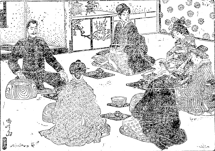 | キーワード | 豪商;浮世絵風の顔;陸軍中尉;高島田;リボン;火鉢;床の間;地袋;襖(ふすま) |