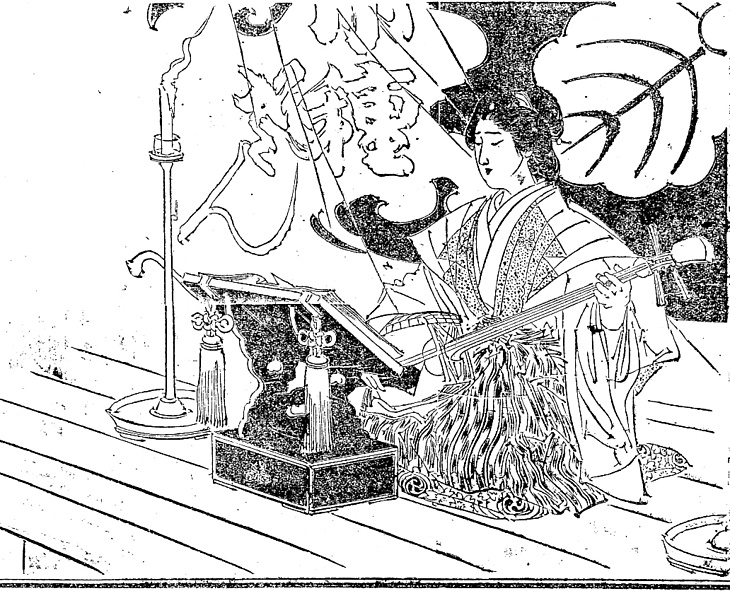 キーワード 娘義太夫;三味線;座布団;書見台;蝋燭;燭台
