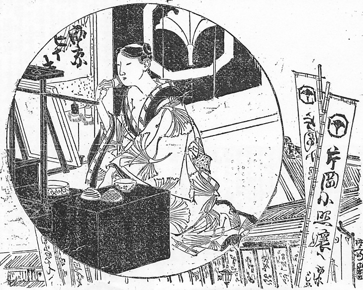 キーワード 楽屋;役者;鏡台;銀杏返しの変形