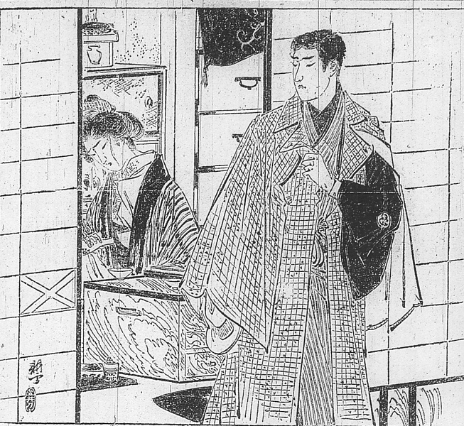 | 身装画像コード | Vwa:[男性和装外套] Vhao:[羽織] D2ni:[日本髪一般] Vka:[掛襟] Eho:[保存・収納・管理の技術・用具・設備;たたみ方;ハンガー] |