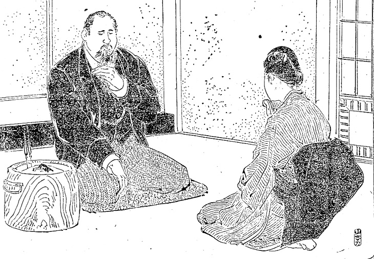 | キーワード | お太鼓結び;口髭;顎鬚;背広;チョッキ;ズボン;座布団;火鉢;火箸 |