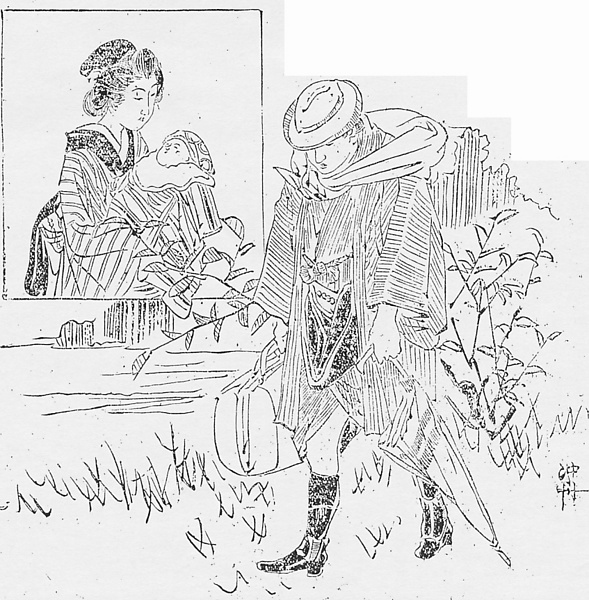 | 身装画像コード | D5ry:[旅装;旅姿;旅装束] Wbo:[かぶり物一般;帽子] Qkas:[絣] D3su:[裾;褄;端折り;からげ] Wkus:[靴下] Wfu:[風呂敷(包み);布包み] Wka:[鞄] Wkas:[傘] D000:[乳児;赤ん坊] |