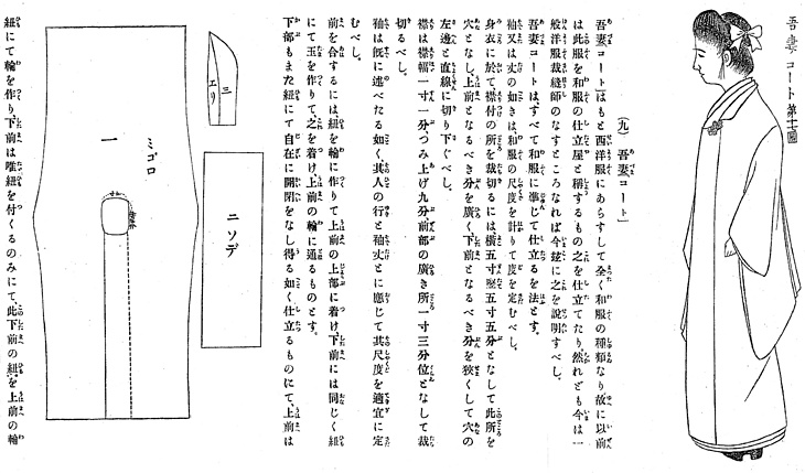 | 身装画像コード | Vko:[コート(女性和装外套)] Epe:[パターン;製図;裁断図;製作の解説] Ech:[できあがり図;仕立て上り図;着装モデル] |