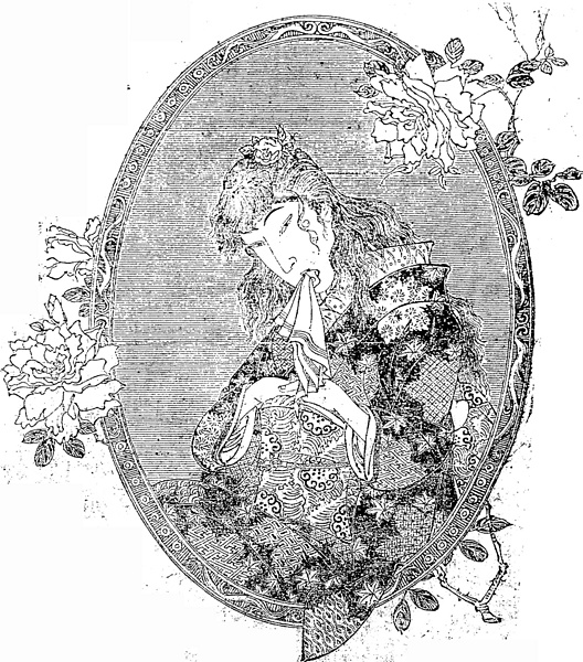 | キーワード | 下げ髪;総柄のきもの;西洋人風の顔;二重瞼;二重まぶた;造花;髪飾り;ハンカチを噛む |