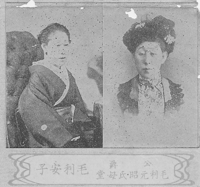 | 説明 | 毛利元徳公爵夫人、毛利安子(1843-1925)。左側は1889(明治22)年頃の写真。右側は1908(明治41)年頃の出典資料発行当時の写真。 |