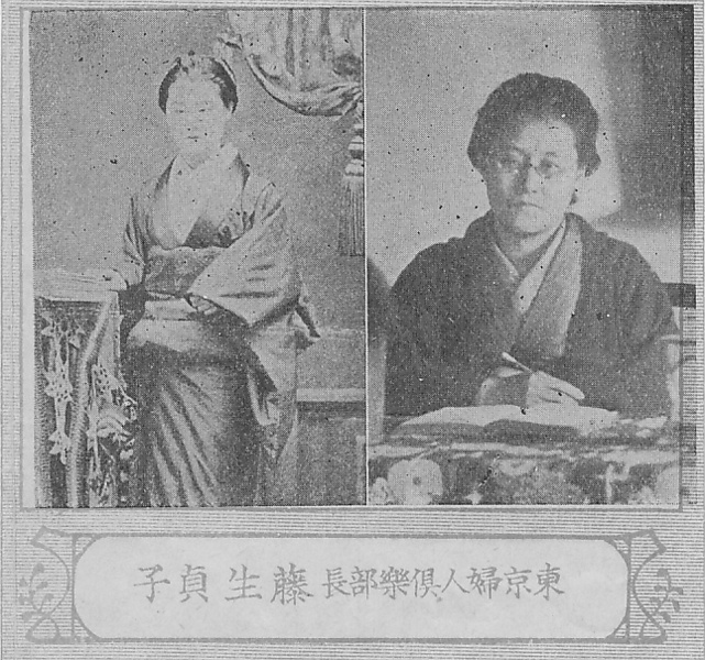 | 説明 | 東京婦人倶楽部部長、藤生貞子。左側は1889(明治22)年頃の写真。右側は1908(明治41)年頃の出典資料発行当時の写真。 |