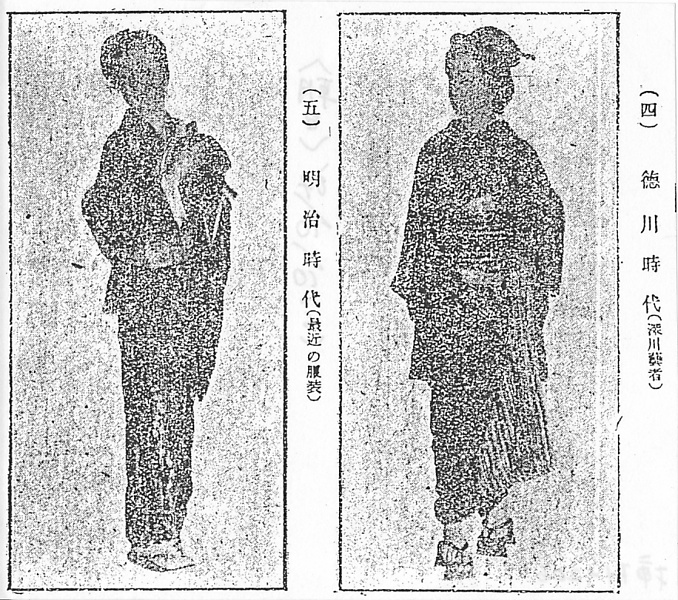 | タイトル | 徳川時代(深川芸者)/明治時代(最近の服装) |