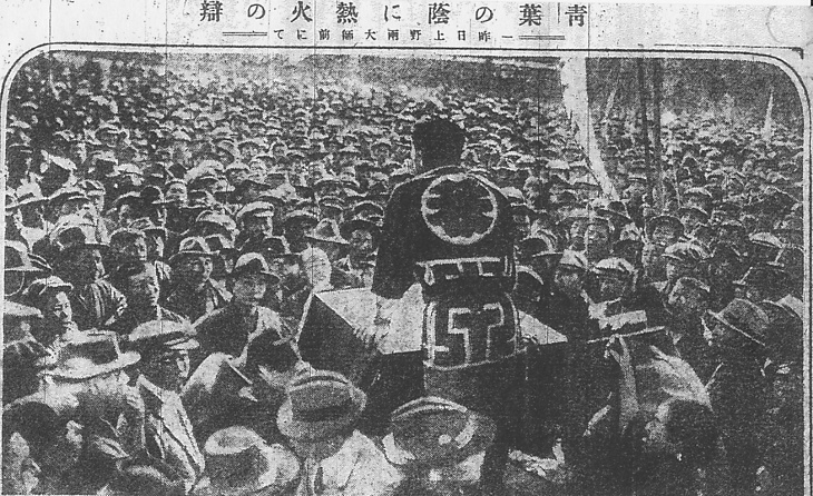 タイトル 青葉の蔭に熱火の弁:昨日上野両大師前にて