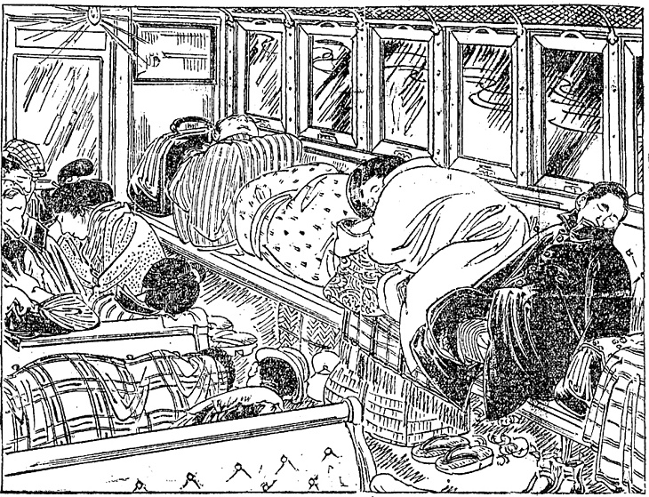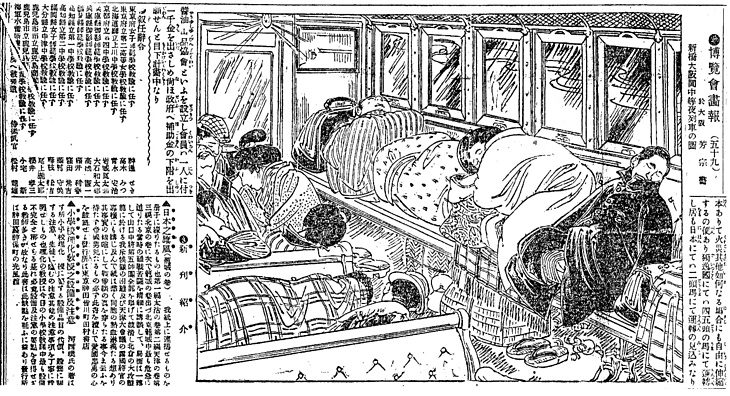 | 小説のタイトル | 博覧会画報(59):新橋大阪間中等夜列車の図 |
