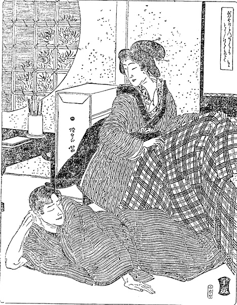 | キーワード | 竪縞のきもの;黒襟;布団を掛ける;筆立て |