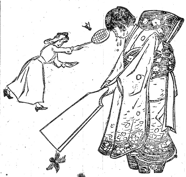 | 身装画像コード | Jnn:[年始のひとと街;正月の行事と遊び] Jsp:[スポーツ・運動・体育をする人々] D0ke:[健康法;体操;体育] D2:[ヘアスタイル] D3ob:[帯の締め方;帯の位置] Wge:[下駄;クロッグ] D6se:[洋装;西洋化;西洋観;ハイカラ;西洋かぶれ;開化ぶり;西洋憧憬] |