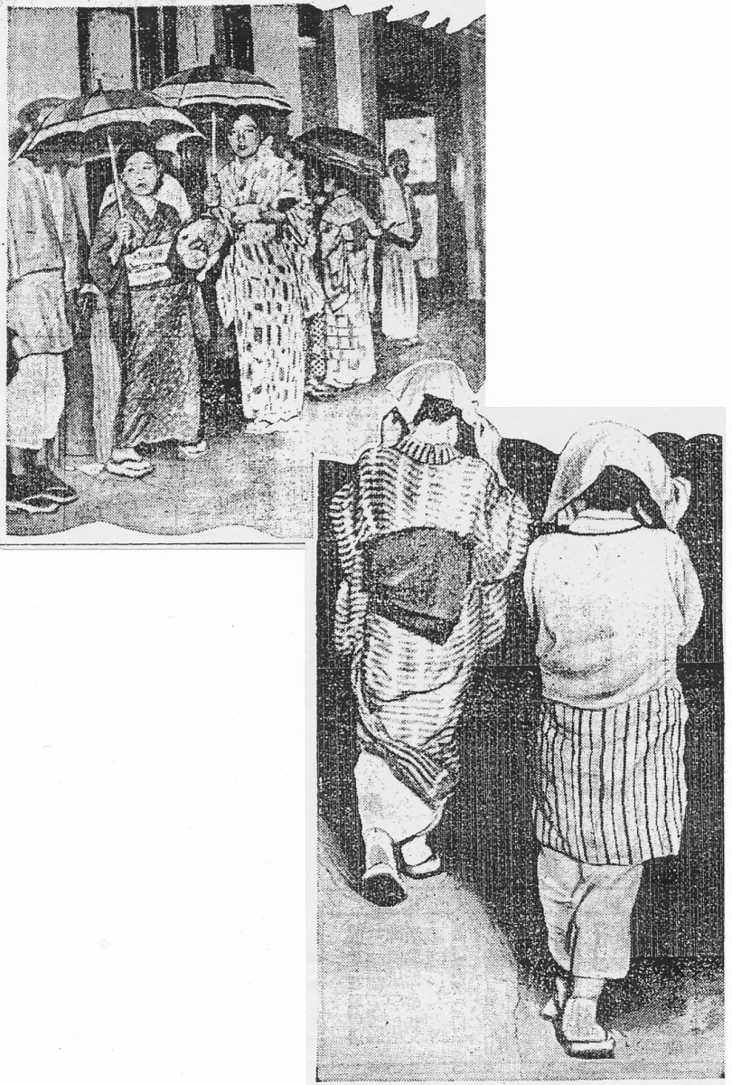 | キーワード | 裾をまくる;手ぬぐいかぶり;にわか雨;後ろ姿 |