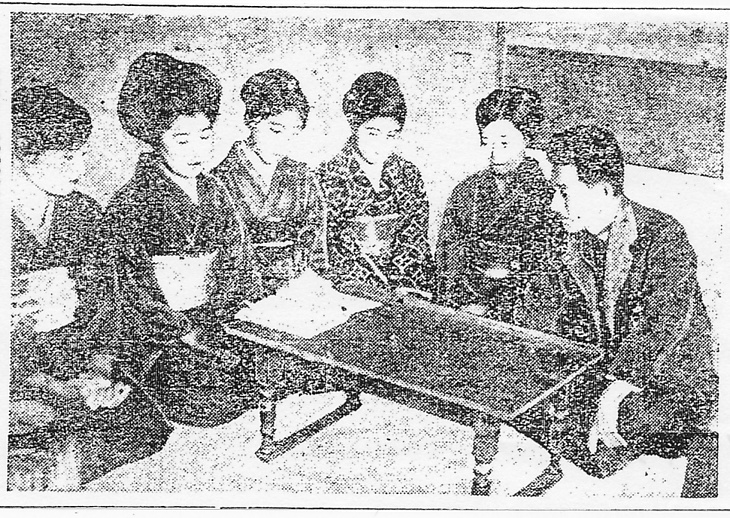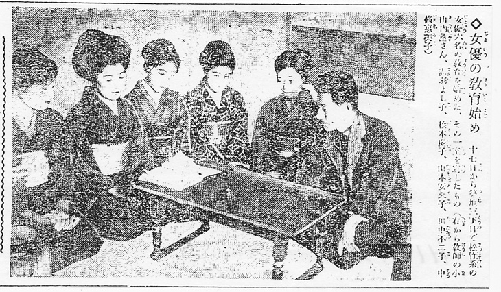 | 説明 | 「十七日から築地三丁目で松竹系の女優六名の教育を始めた、その一室を写したもの(右から教師の小山内薫さん、赤羽よし子、橋本慶子、山本安英子、田中不二子、中條恵美子)」。 |