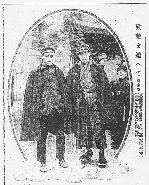 | タイトル | 勁敵を邀へて:京都駅前で相会した一高の橋本(左)、三高の古海(右)両主将 |