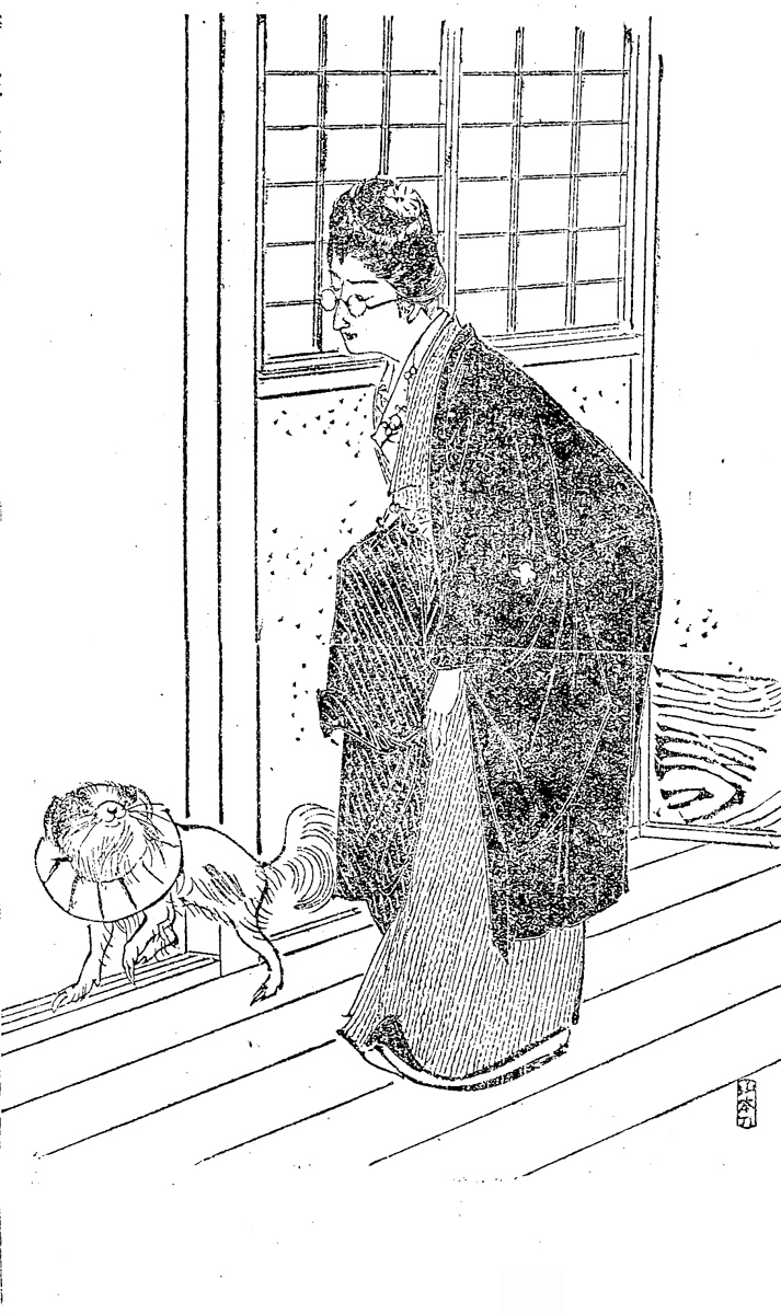| 身装画像コード | D2so:[束髪(前期縦型の)] D1ka:[髪飾り(櫛,簪,リボン)] Vhao:[羽織] Vhan:[半襟] D3su:[裾;褄;端折り;からげ] Wme:[眼鏡] Jhi:[人と動物;ペットと人] |