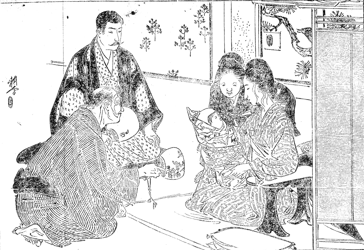 | キーワード | おくるみ;抱っこ;つくね髪;竪縞のきもの;角帯;うちわ;口髭;飛白のきもの;絽の羽織;脇息;襖(ふすま);簀戸(すど);簾戸(すど);葦戸(よしど) |