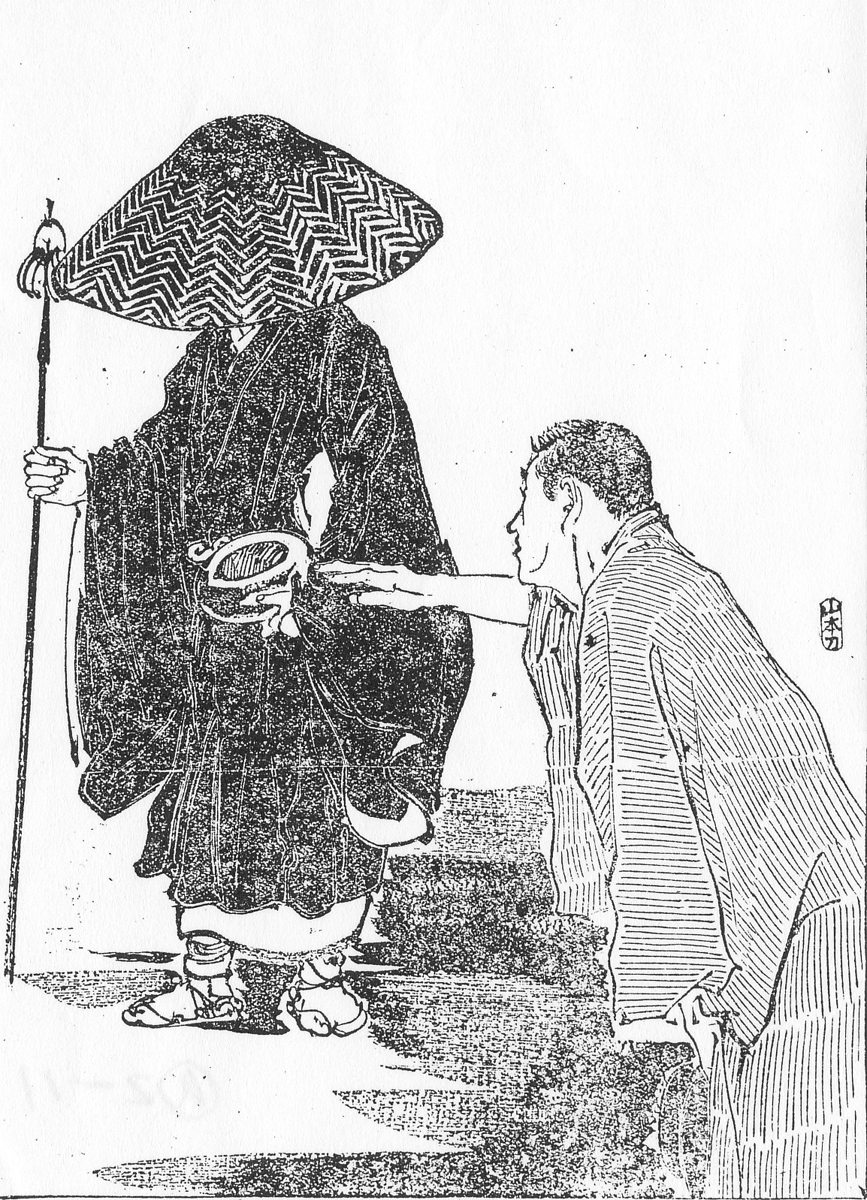 | キーワード | 坊主;編笠;袈裟;ぞうり;錫杖(しゃくじょう);托鉢の木鉢 |