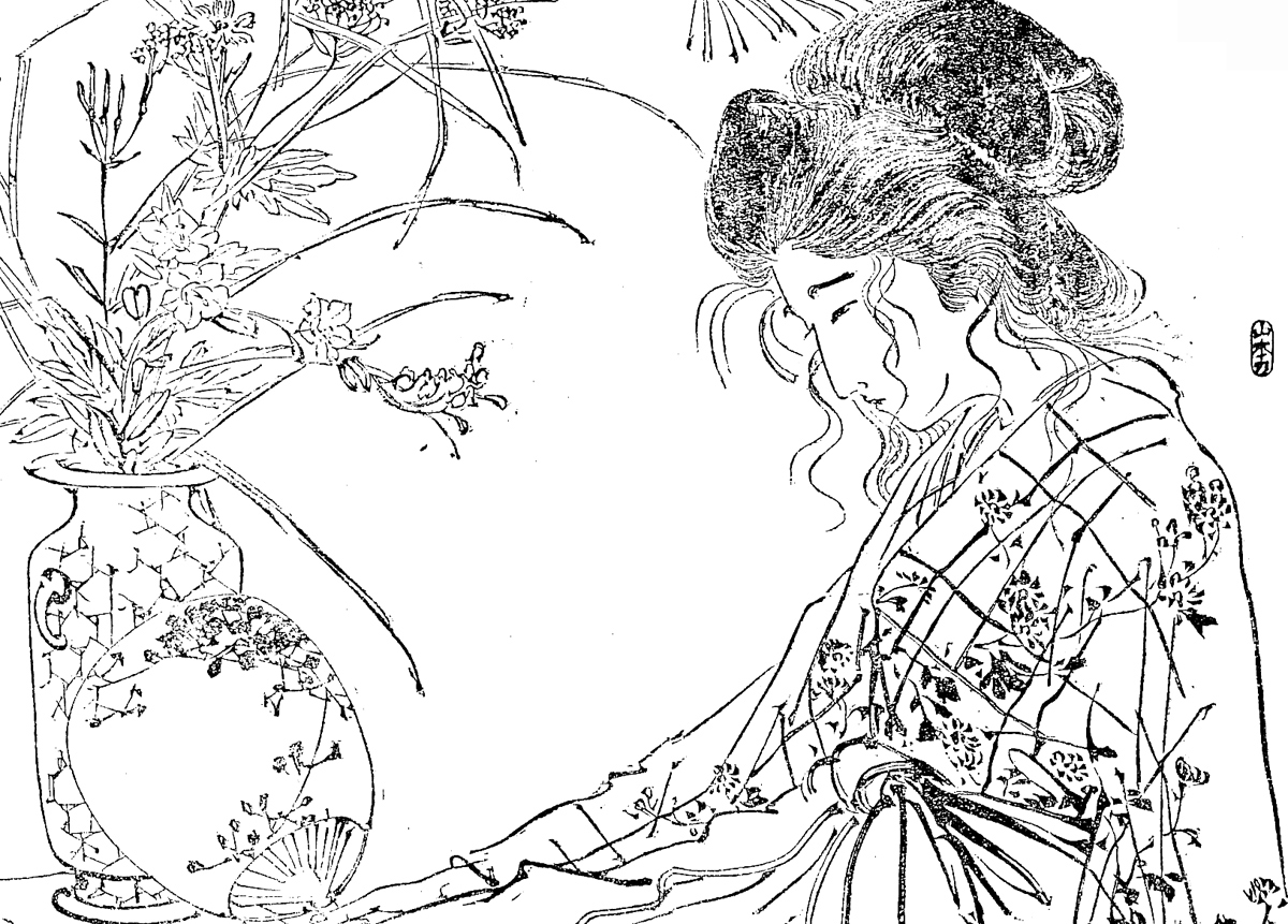 | キーワード | 乱れ髪;寝間着;うちわ;花瓶;花器;生け花 |