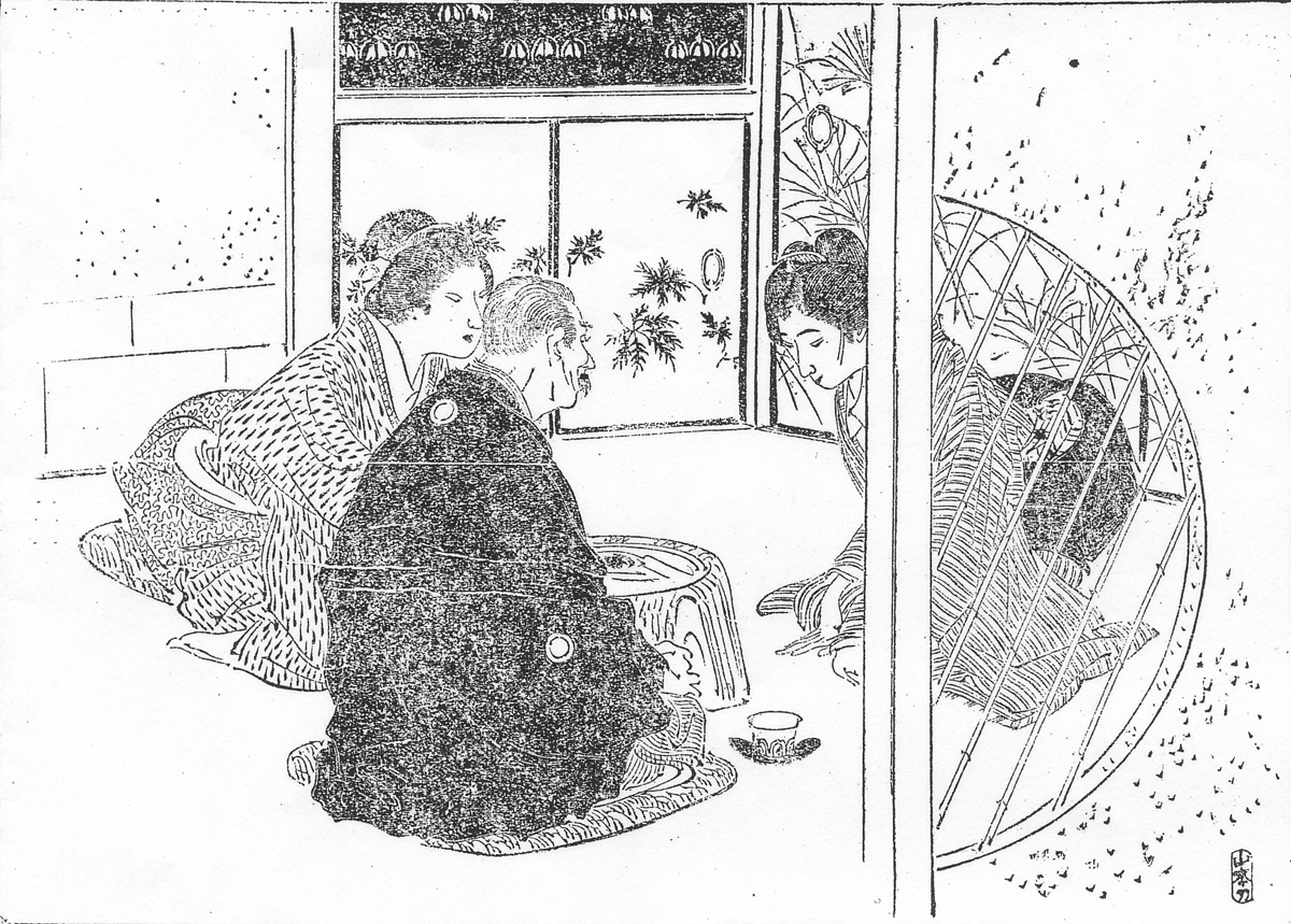 | 身装画像コード | D005:[20~30歳代の女性;年増] D80:[姿勢;ポーズ(特異な姿勢・ポーズ・格好一般)] D006:[初老の女性(40~50歳代)] D2ma:[丸髷] D1me:[眼・眉毛周辺の状態(眼・睫毛・眉の化粧)] D016:[中年~初老の男性] D1hi:[ひげ] Vhao:[羽織] |
