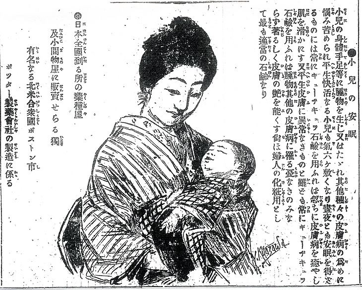 タイトル キューチキュラ石鹸:小児の安眠 日本全国到る所の薬種屋及小間物屋に販売せらる独(ひとり) 有名なる北米合衆国ボストン市ポッター製薬会社の製造に係る