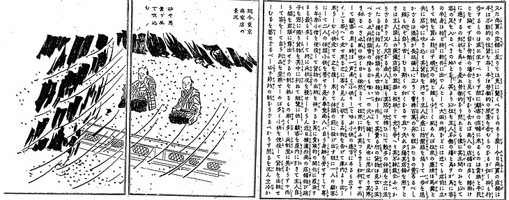 | タイトル | 現今東京商家店の景況:砂や馬糞が風で吹込む |