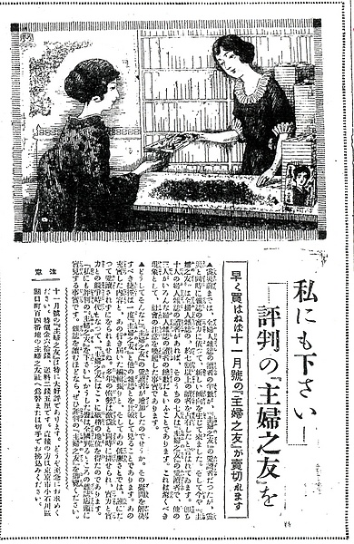 | タイトル | 私にも下さい……評判の『主婦之友』を:早く買はねば十一月号の『主婦之友』が売切れます |