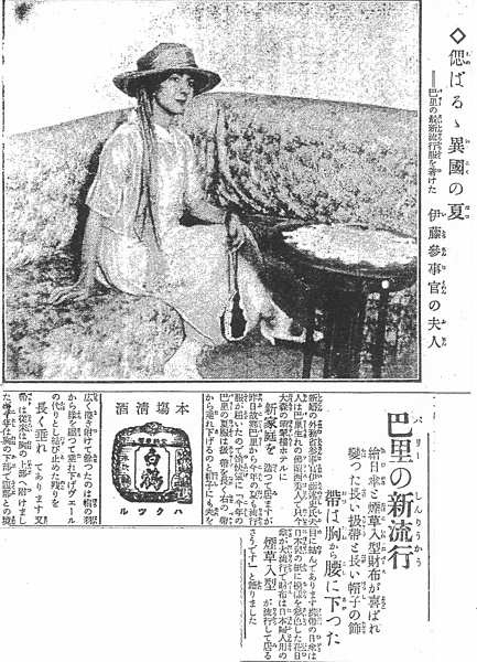 | タイトル | 偲ばるゝ異国の夏:巴里の最新流行服を着けた伊藤参事官の夫人 |