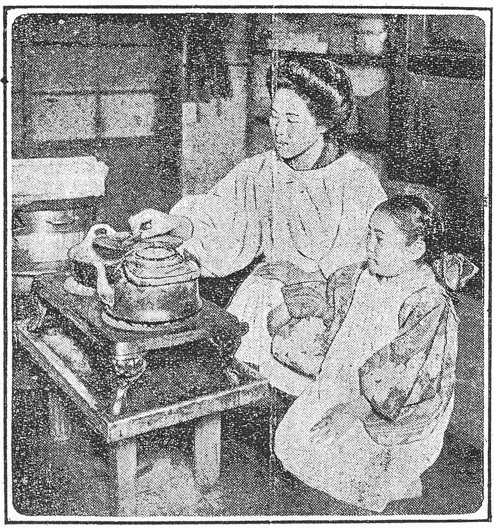 | キーワード | 割烹着;着ぶくれの子ども;薬缶(やかん) |