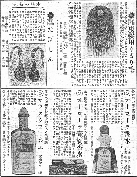 タイトル 束髪用ぐるり毛/たぼしん/オーローラ香水/オーローラ一滴香水/マウスウワーシユ